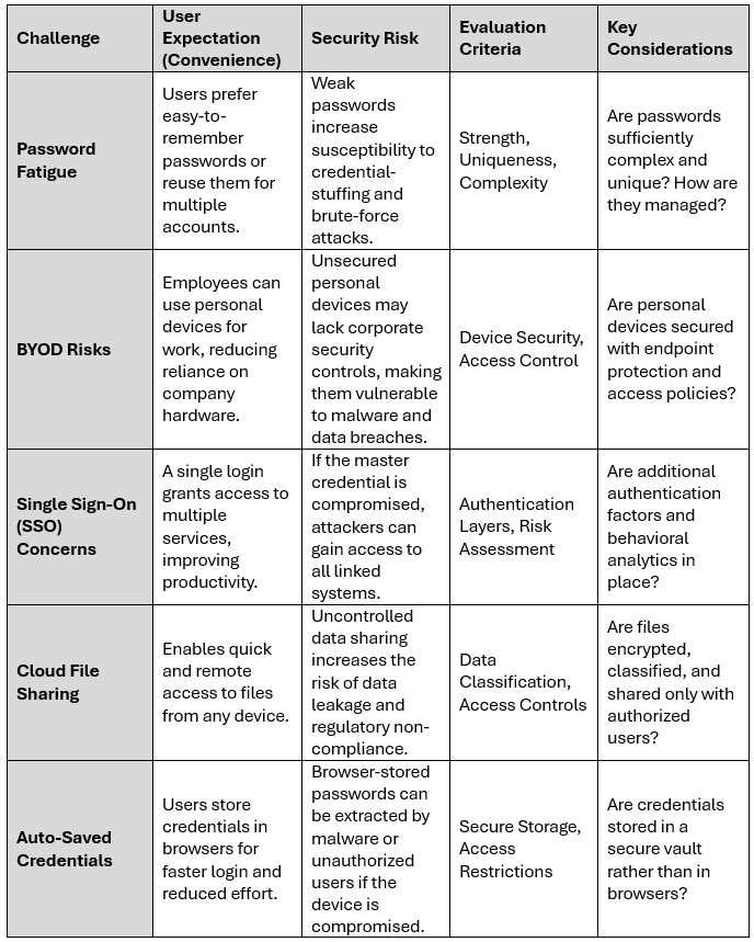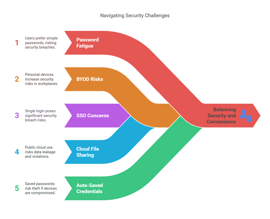 Security and user expectations often clash, as users prioritize ease of access and efficiency, while security measures emphasize risk mitigation. This tension results in five common challenges: