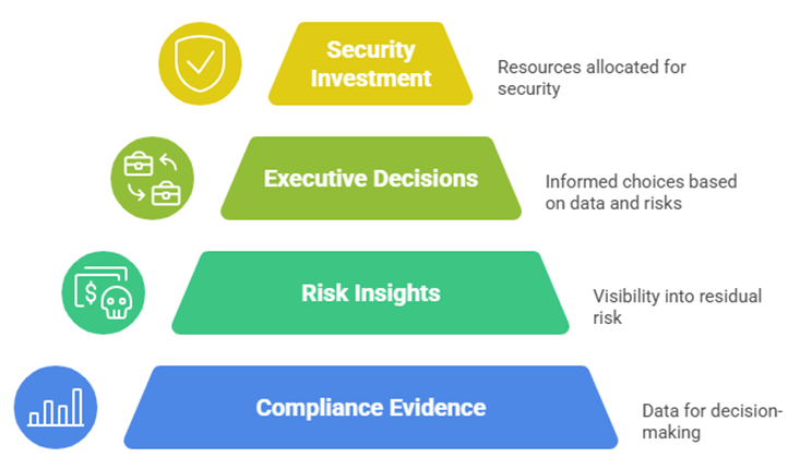 Compliance evidence becomes data for decision-making — feeding risk dashboards, board reports, and security KPIs.