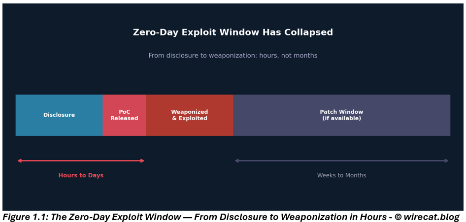 This scenario is no longer rare. In today’s threat landscape, where public proof-of-concepts are weaponized within hours and exploit techniques are rapidly commoditized, the window between disclosure and exploitation has effectively collapsed.